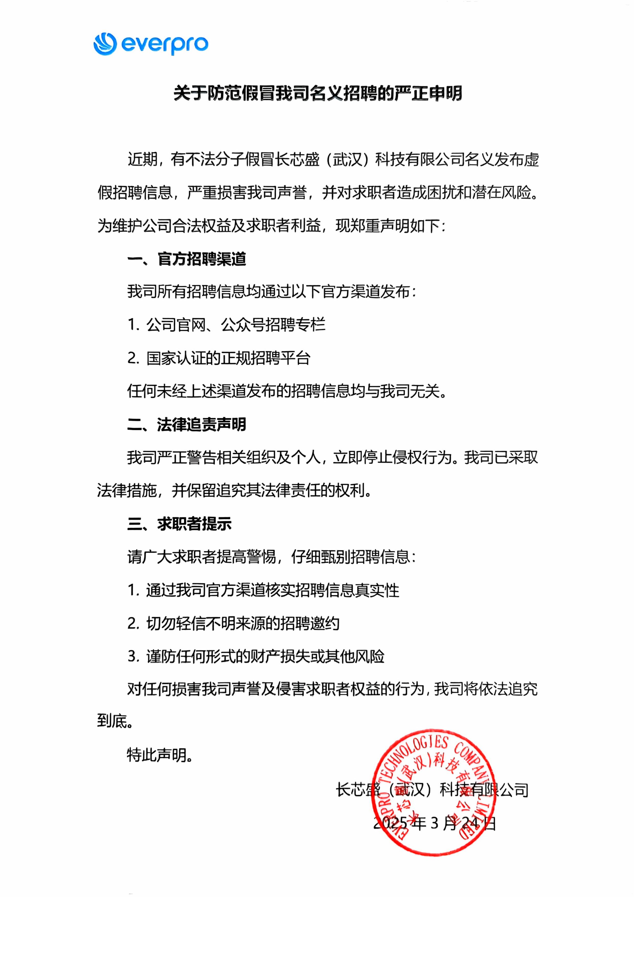 关于防范假冒我司名义招聘的严正申明